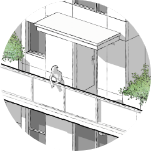 Homes are connected by openair, exterior walkways, creating a safe sense of community.